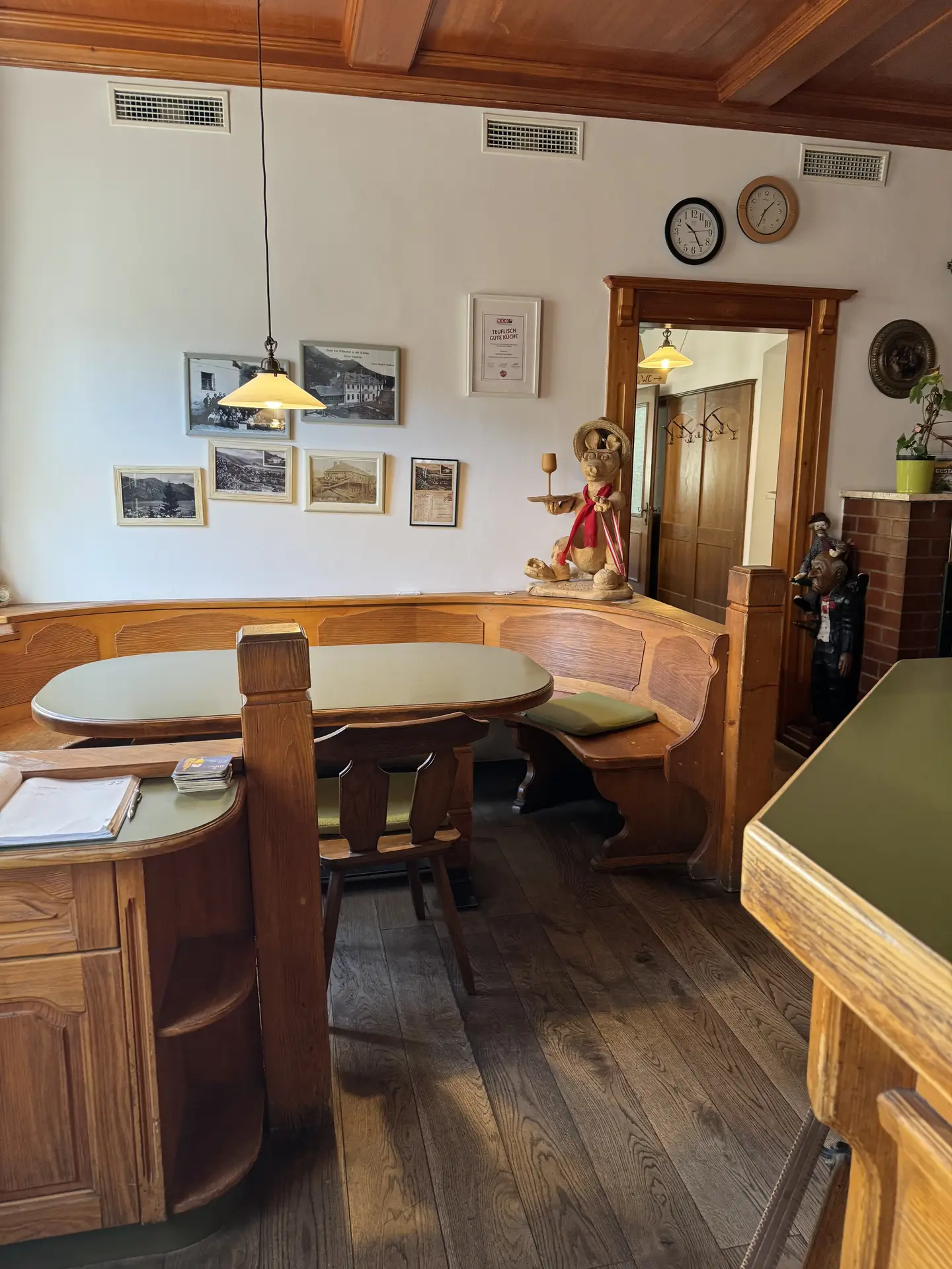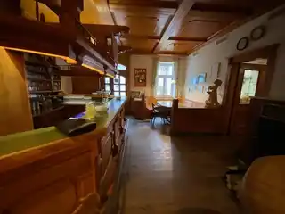 Fliesen, Parkett, Steinboden, Öl, Zentralheizung, Angeschl. Bar, Angeschl. Hotelrestaurant, Kabel / Satelliten-TV, Parkplatz, Gastterrasse, Kantine / Cafeteria, Südostbalkon / -terrasse, Pissoir, Holz, Gebläsekonvektor (fan coil), Deckenleuchten, Gäste-WC, Pyramidendach, Massiv, Besitzurkunde, Bergblick, Fernblick, Doppel- / Mehrfachverglasung, Grünblick