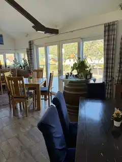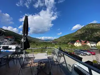 Das Highlight dieser Immobilie ist zweifellos die großzügige Terrasse mit ihrem unvergleichlichen Ausblick auf die Berge, das Tal und die umliegende Natur. Hier können Sie Ihren Gästen ein unvergessliches Erlebnis bieten und sich an der frischen Luft entspannen.